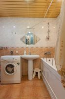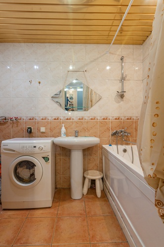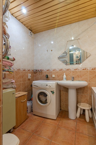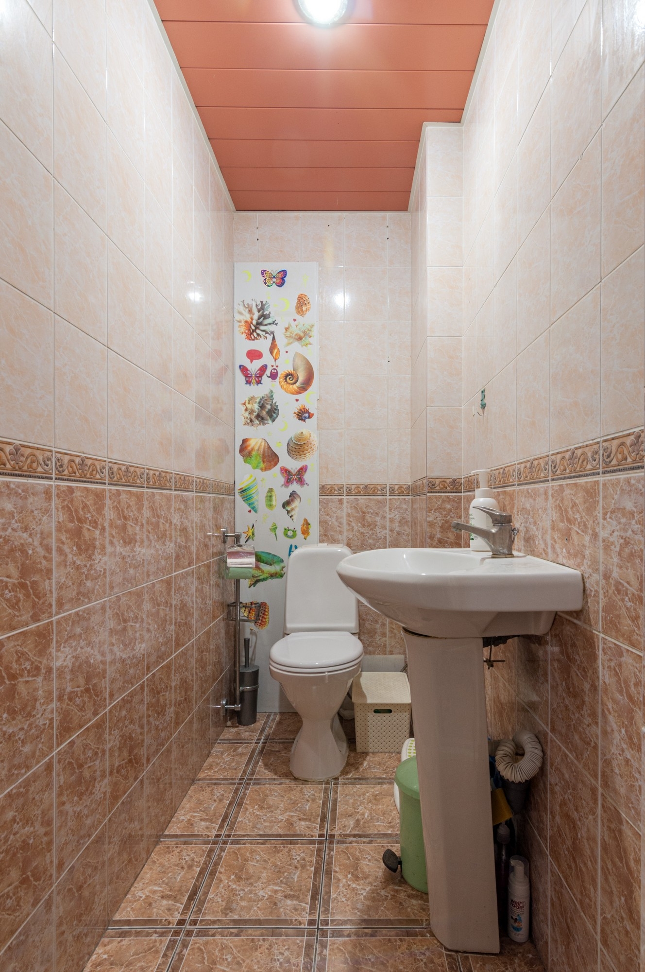 -раздельный санузел в кафеле- комфортное решение для большой семьи.