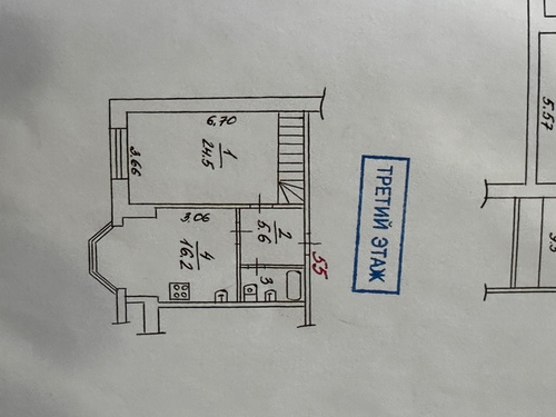 На втором этаже 3 изолированные комнаты: 24,5 м, 16,2м, 20,2м + санузел.