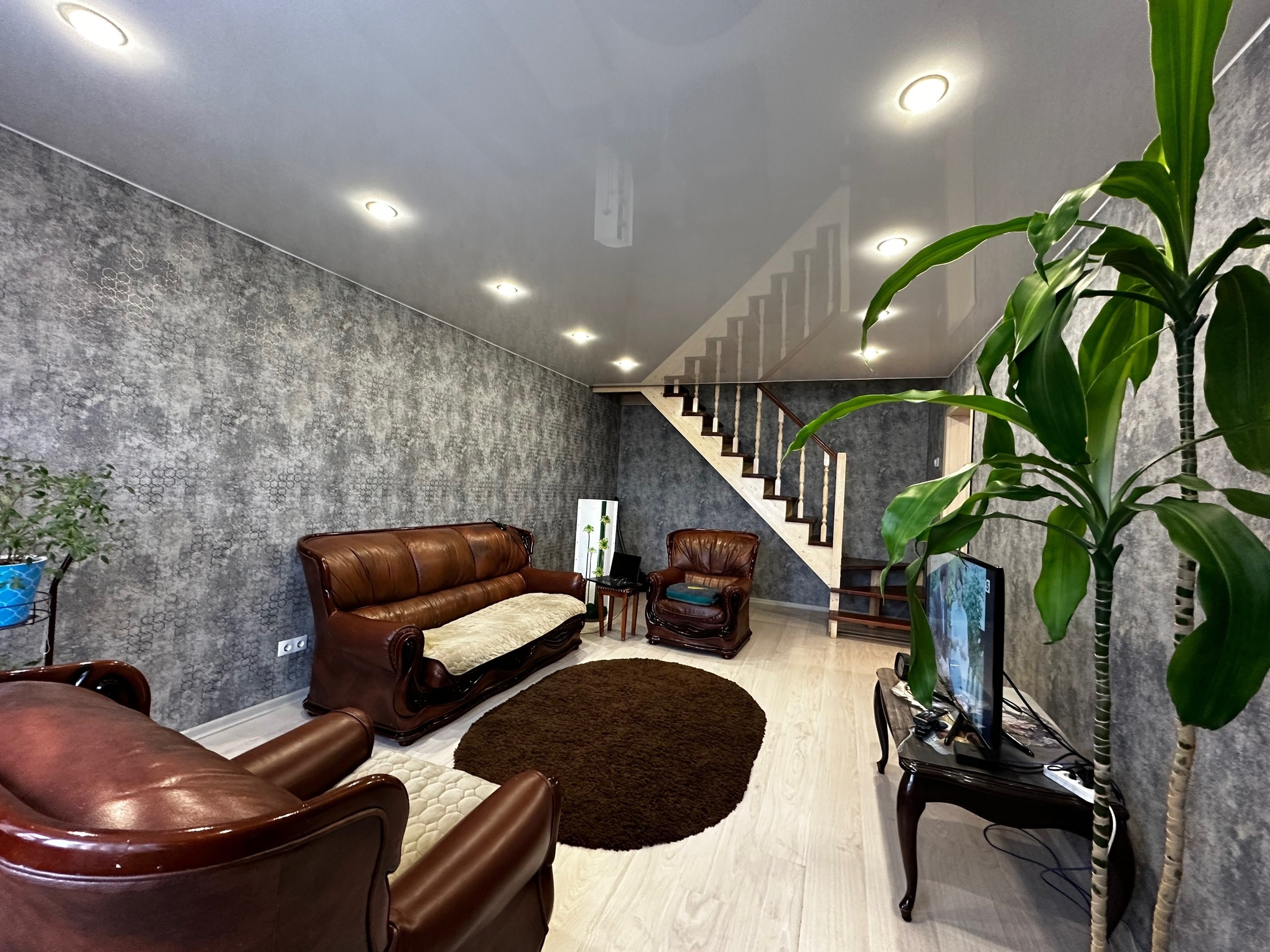 Квартира расположена в двух уровнях , это дает эффект своего дома, месторасположение дома максимально комфортное, вся инфраструктура ул. Ленинградской у вас под рукой.