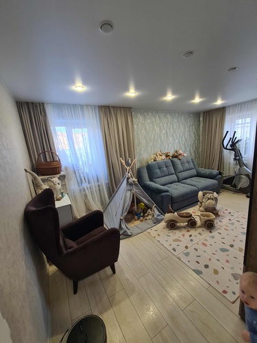 Дом расположен вдали от проезжей части с развитой инфраструктурой.