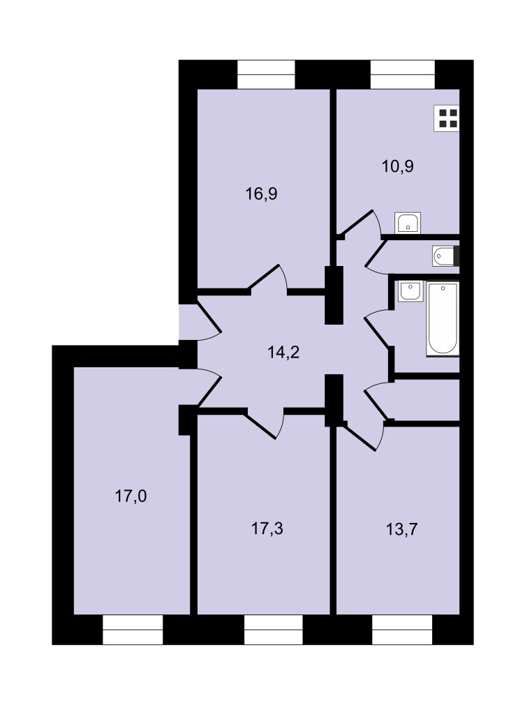 В продаже просторная четырехкомнатная квартира в историческом здании сталинской эпохи. Отличное предложение для большой семьи. Общая площадь составляет 96,1 квадратных метров!