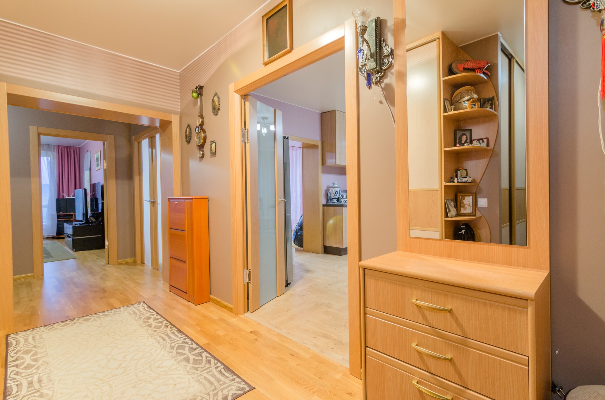 В квартире имеется два сан узла: гостевой сан узел и своя мастер-спальня с постирочной, гардеробная.