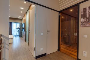 Квартира расположена на 5 этаже, имеет евроремонт и три изолированные жилые комнаты с площадями 15,6 кв. м, 15,5 кв. м и 38,1 кв. м, а также две дополнительные комнаты площадью 23,8 кв. м и 20 кв. м.