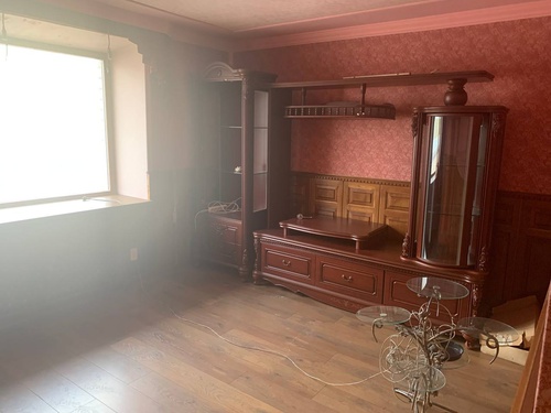 Покупателю остаётся большой кухонный гарнитур и большой встроенный шкаф, мебель в с/у,