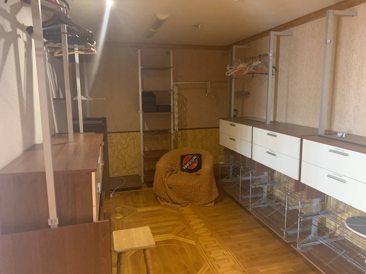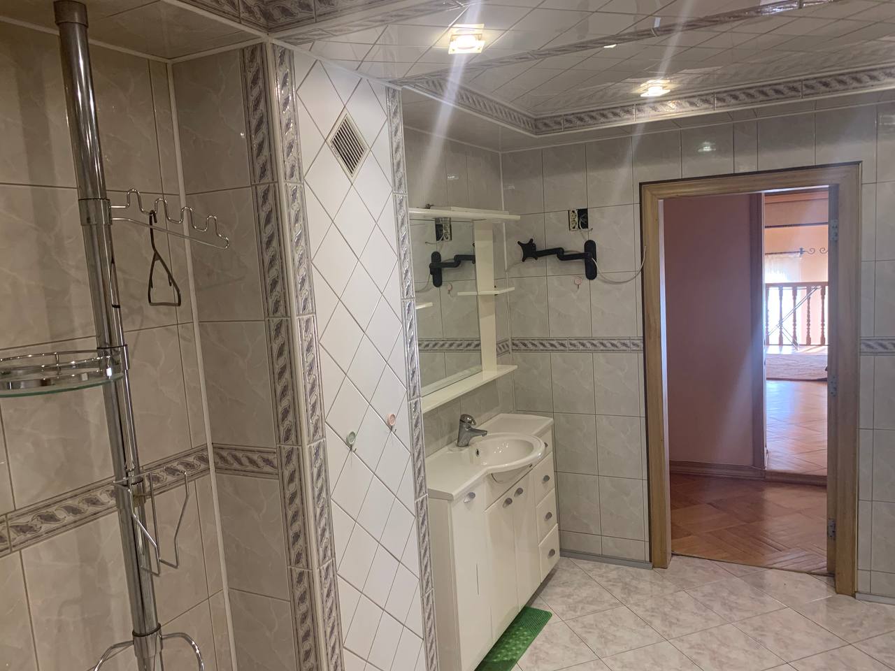 Имеется большая гардеробная. В санузле на первом этаже находится сауна.