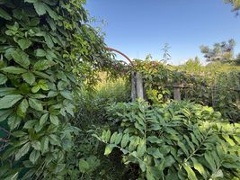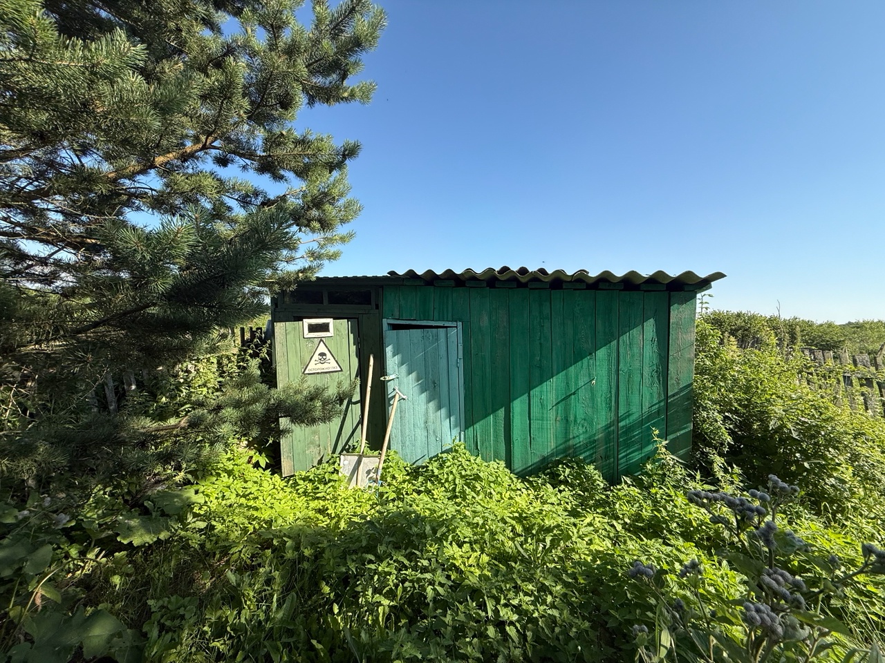 На участке посажены плодовые деревья (вишня, смородина, жимолость, ирга, яблоня и др.).