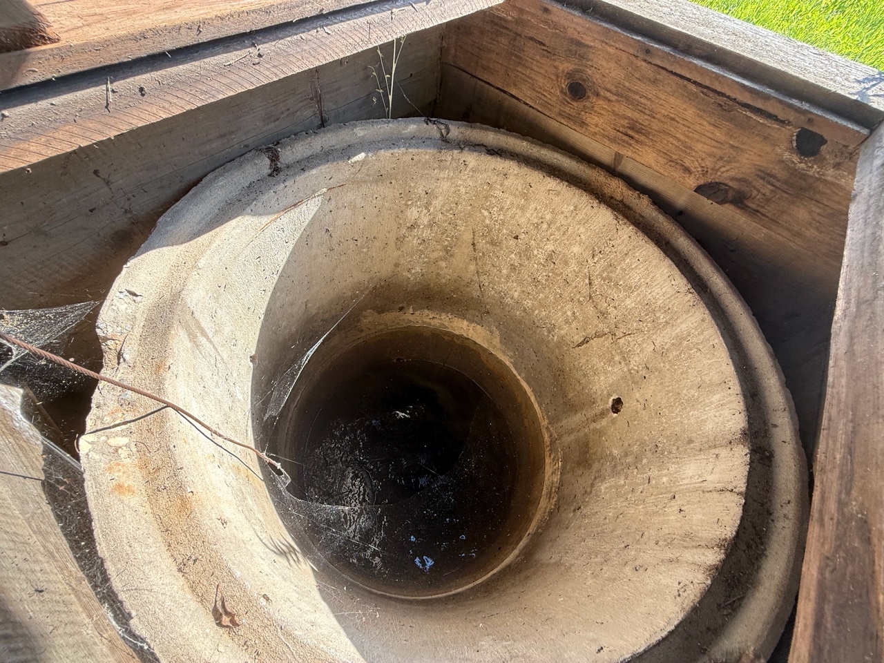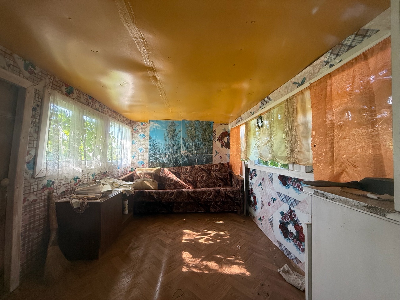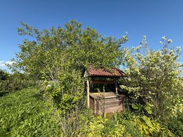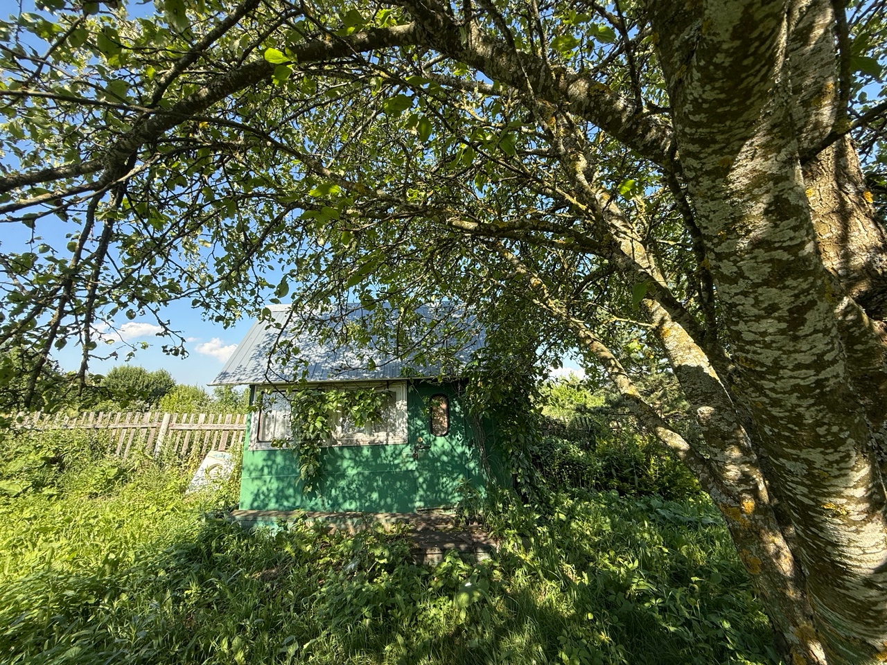Есть дачный дом, сарайка, деревянный забор на металлических трубах и колодец на 6 колец.