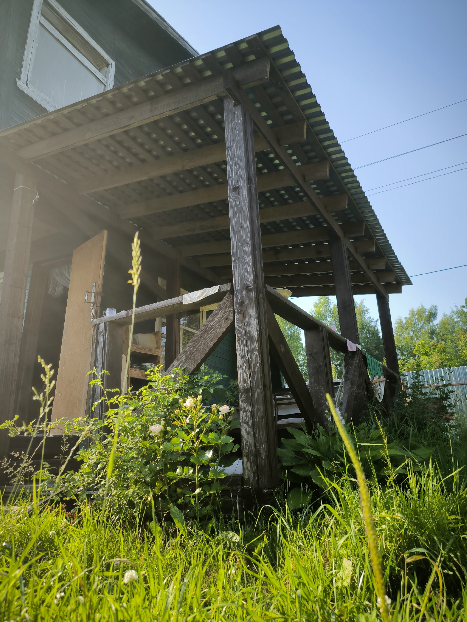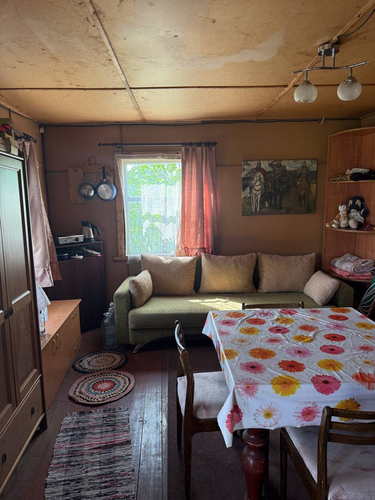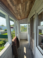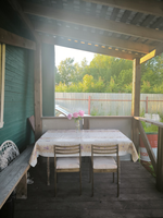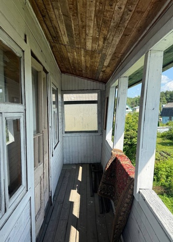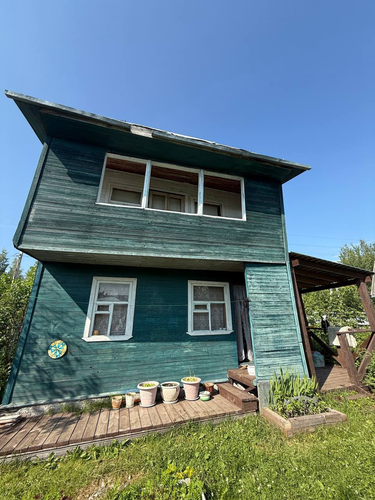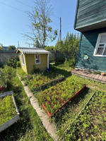 Дом двухэтажный, площадью 33,3 квм, плюс построена большая терраса и балкон второго этажа. На участке построены сарайка, туалет, домик для игры детей.