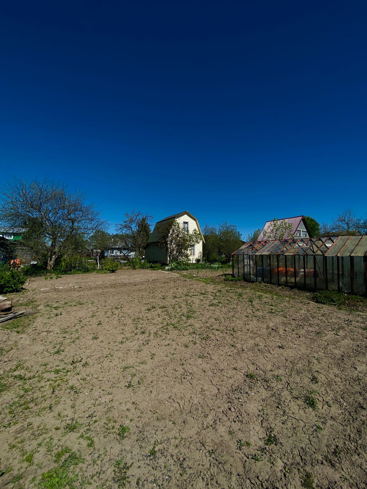 Участок разработан, ухоженный. Много насаждений: яблони, облепиха, малина, смородина...