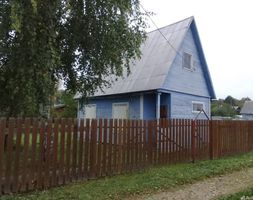 Дом щитовой, имеет две комнаты и кухню площадью 10 кв. м. Расположен на участке в 7 соток с круглогодичным асфальтированным подъездом. На территории участка имеются баня и колодец. Участок благоустроен и огорожен забором.