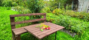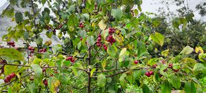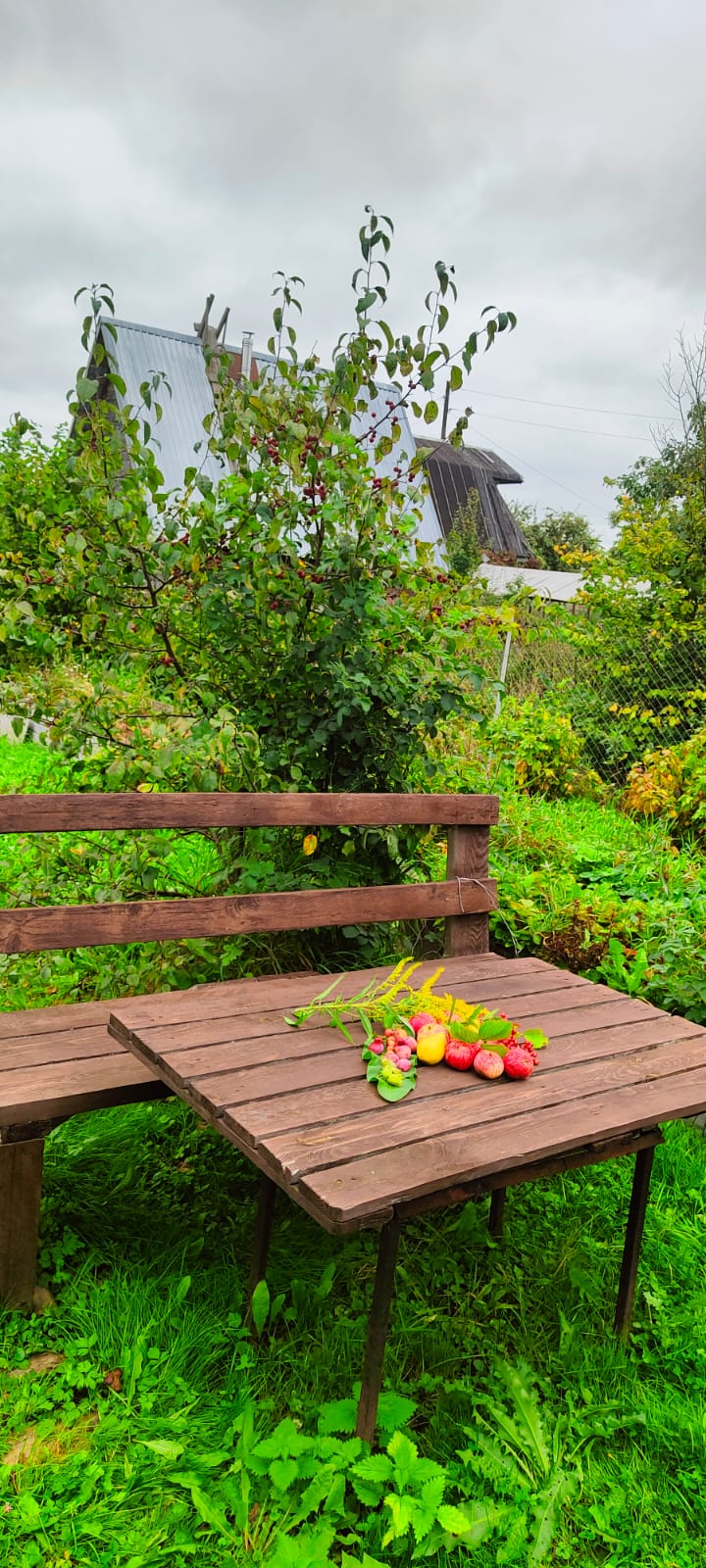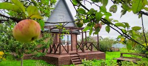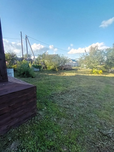 Туалет в даче( +оставлено место под душевую кабину).Теплица. Участок разработан- грядки. Из посадок- груши(2 шт) , яблони разных сортов(около 10 яблонь), вишня- кустарник, черешня( 2шт), слива- тернослива( 5шт) и чернослив( 3 шт), много черной смородины( около 20 кустов), красная смородина( 3шт), крыжовник ( 5шт)- разный , малина- красная, желтая, облепиха, калина, черноплодная рябина( 3 шт), клубника( 4 грядки)хорошая сортовая, ежевика, цветы( много нарциссов разных сортов, примулы, мускари, тюльпаны, пионы-разные - большие кусты, лилейники и т.п.). Урожаи всегда обильные.