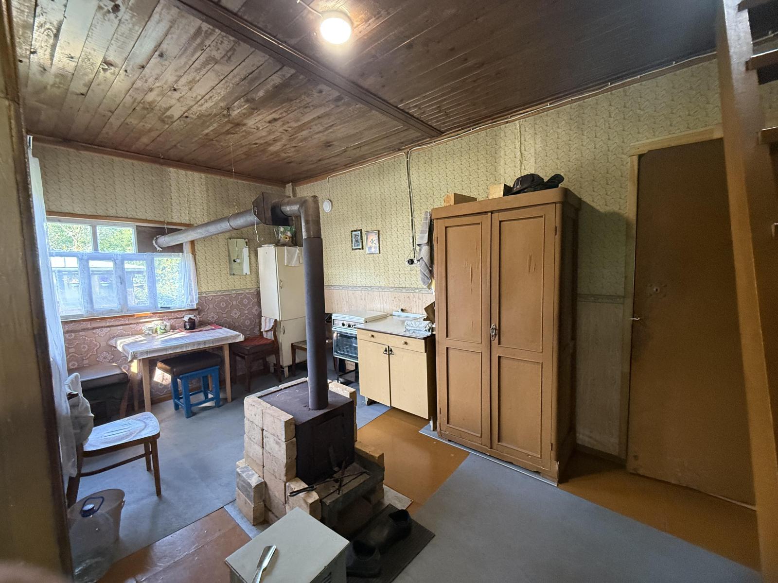 Дом идеально подходит для тех, кто ценит тишину и природу, но при этом не хочет быть далеко от городской суеты — всего 2 км до города. Общая площадь дома составляет 60 кв. м, из которых 42 кв. м — жилая площадь, а площадь кухни — 12 кв. м. Дом двухэтажный, с двумя комнатами, высота потолков — 2,5 м.