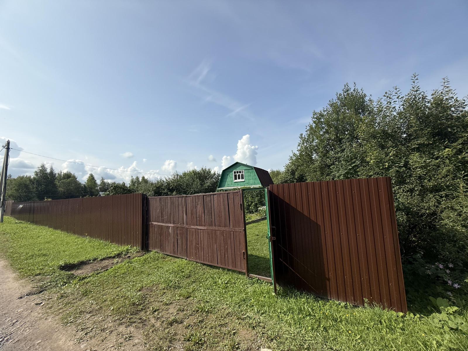 Дом огорожен забора из профнастила, имеются ворота для въезда машин. На территории дачи можно разместить до 5 машин.
