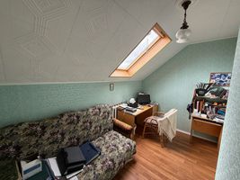 Второй этаж имеет переменный уровень большое помещение над гаражом 51,5 м с двумя входами и выше на пролет второй этаж имеет 3 спальни (15 м с гардеробной, 16 м со шкафом-купе, 18 м с лестницей на чердачное помещение, кабинет 9 м с мансардным окном и санузел 3 м. Чердачное помещение высокое позволяет оборудовать еще 4 спальни с мансардными окнами и санузел при необходимости.