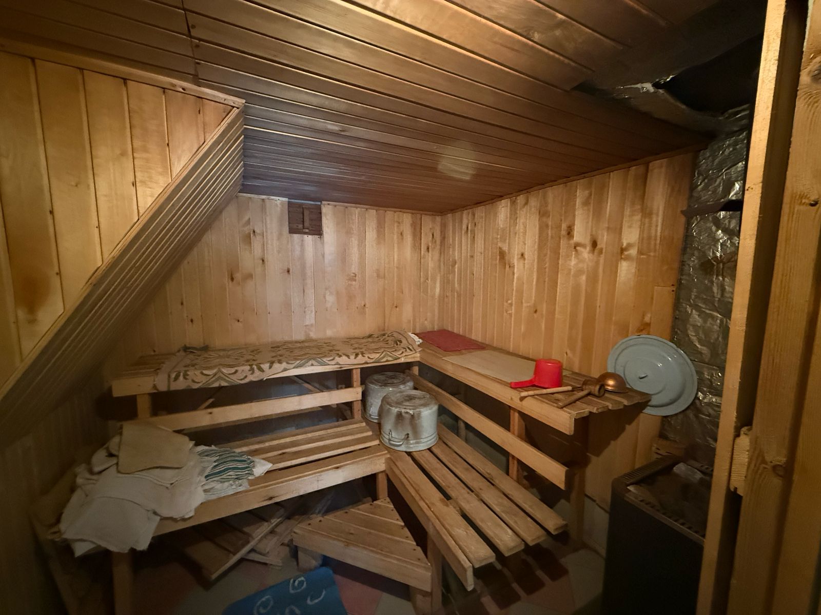 В северной части дома гараж 24 м с кессоном и смотровой ямой. Сауна с дровяной печью, парилкой и большой моечной (с купелью-ванной и окном).