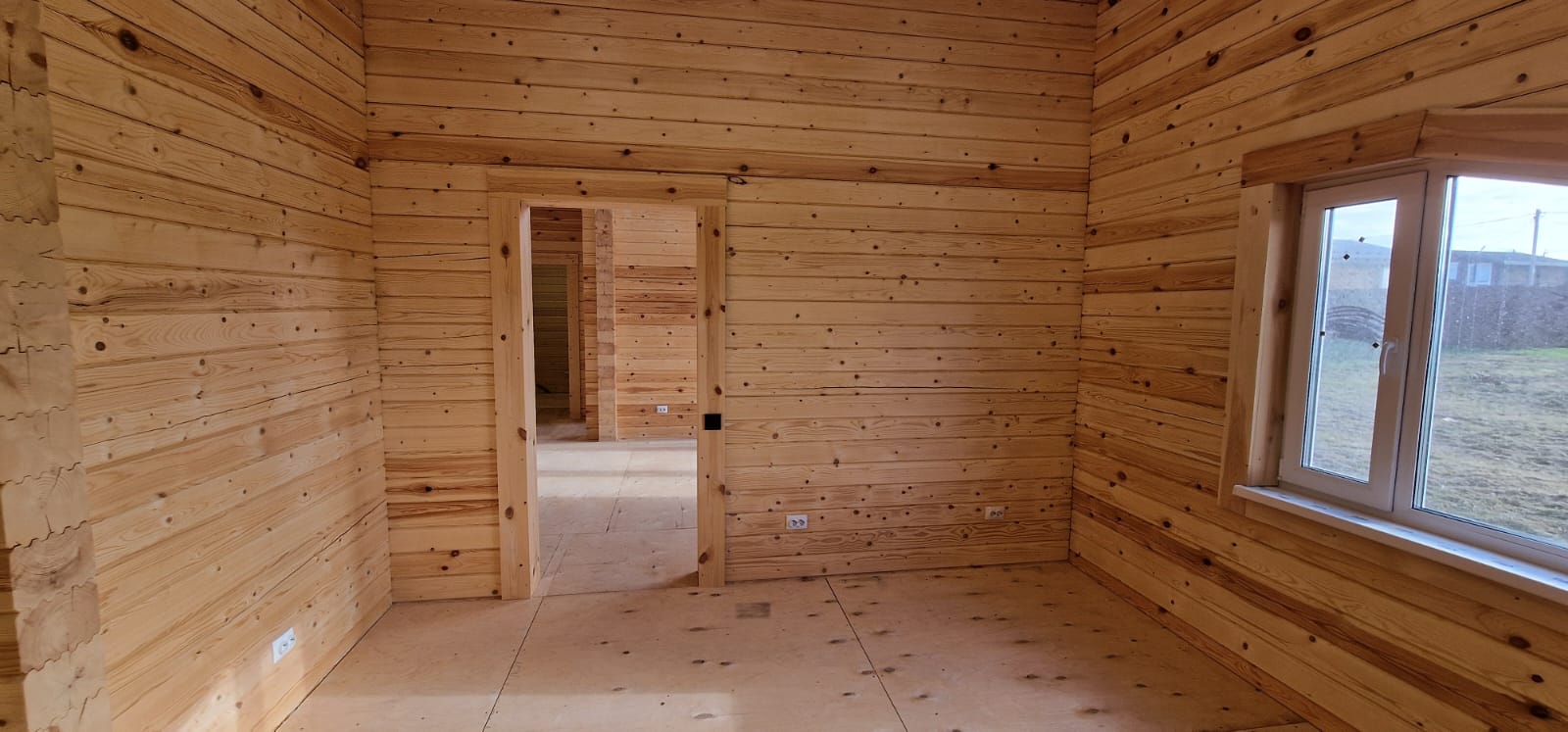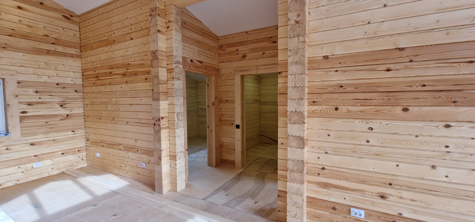 Внутри дома скрытая проводка, выключатели и розетки.