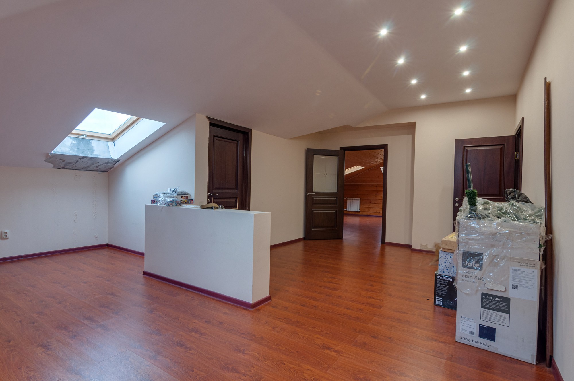 Есть мансардный этаж площадью 230 м2, отапливаемый, с отдекой.