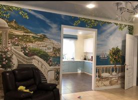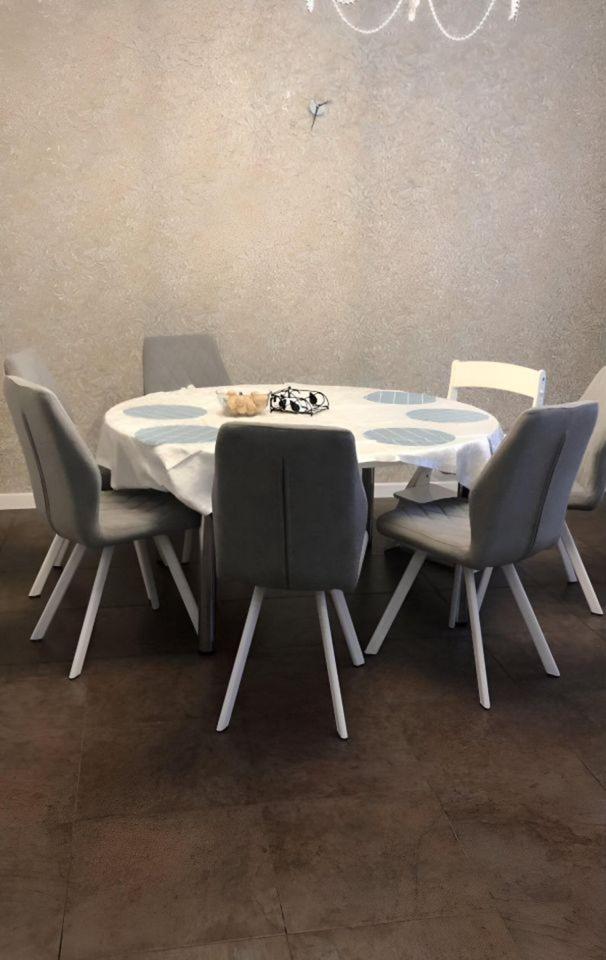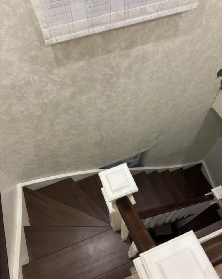 1 этаж: высота потолка 3,2 м., веранда 8*3,5 м. застеклена, гардероб, холл с лестницей, объединённая кухня-столовая с гостиной общей площадью 54 кв.м., тёплые полы по всему периметру(регулируемый по зонам), гостевой санузел с душем, лестница из бука.