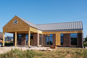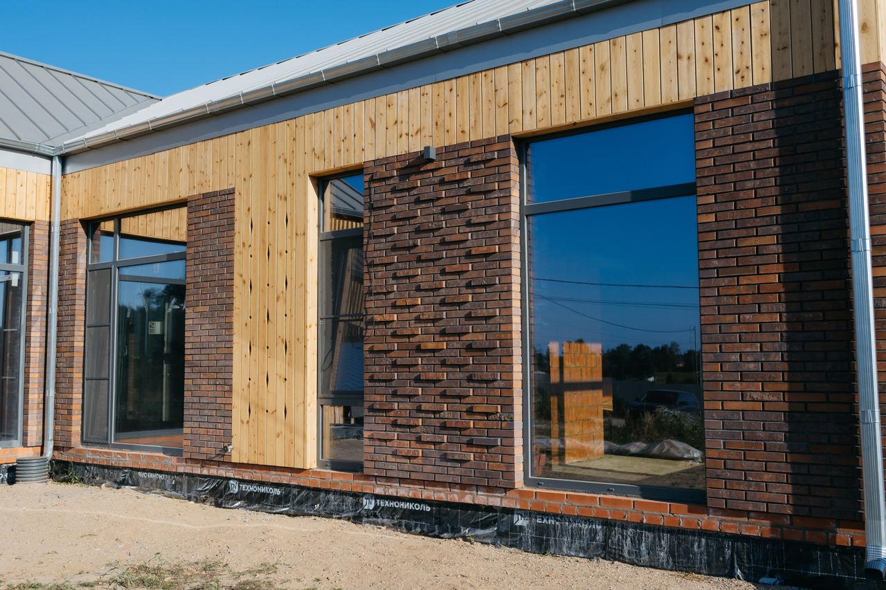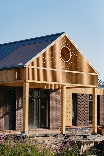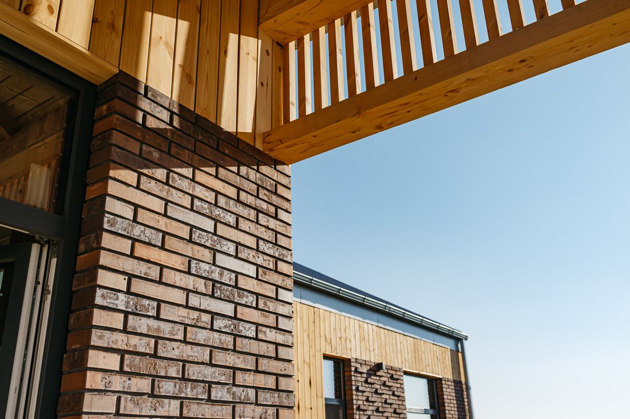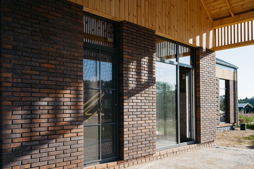 • Материалы: Полностью из керамического кирпича (стены 640 мм), фасад из архитектурного клинкерного кирпича с элементами 3D-кладка, термообработанная доска с элементами срытого монтажа, железобетонные перекрытия.
