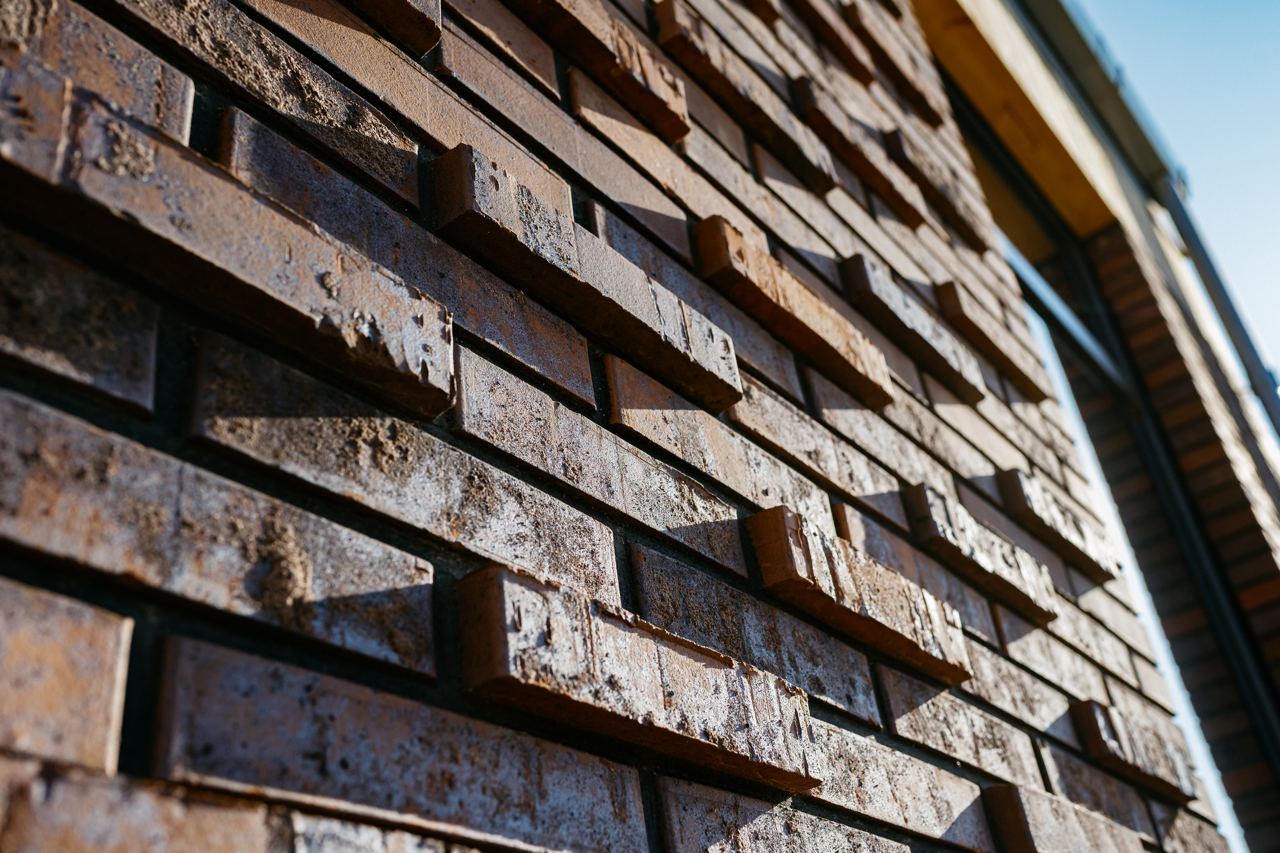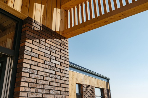 — Уникальный фасад с 3D-кладкой и натуральной древесиной.