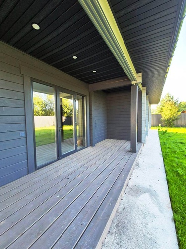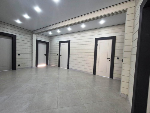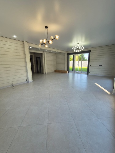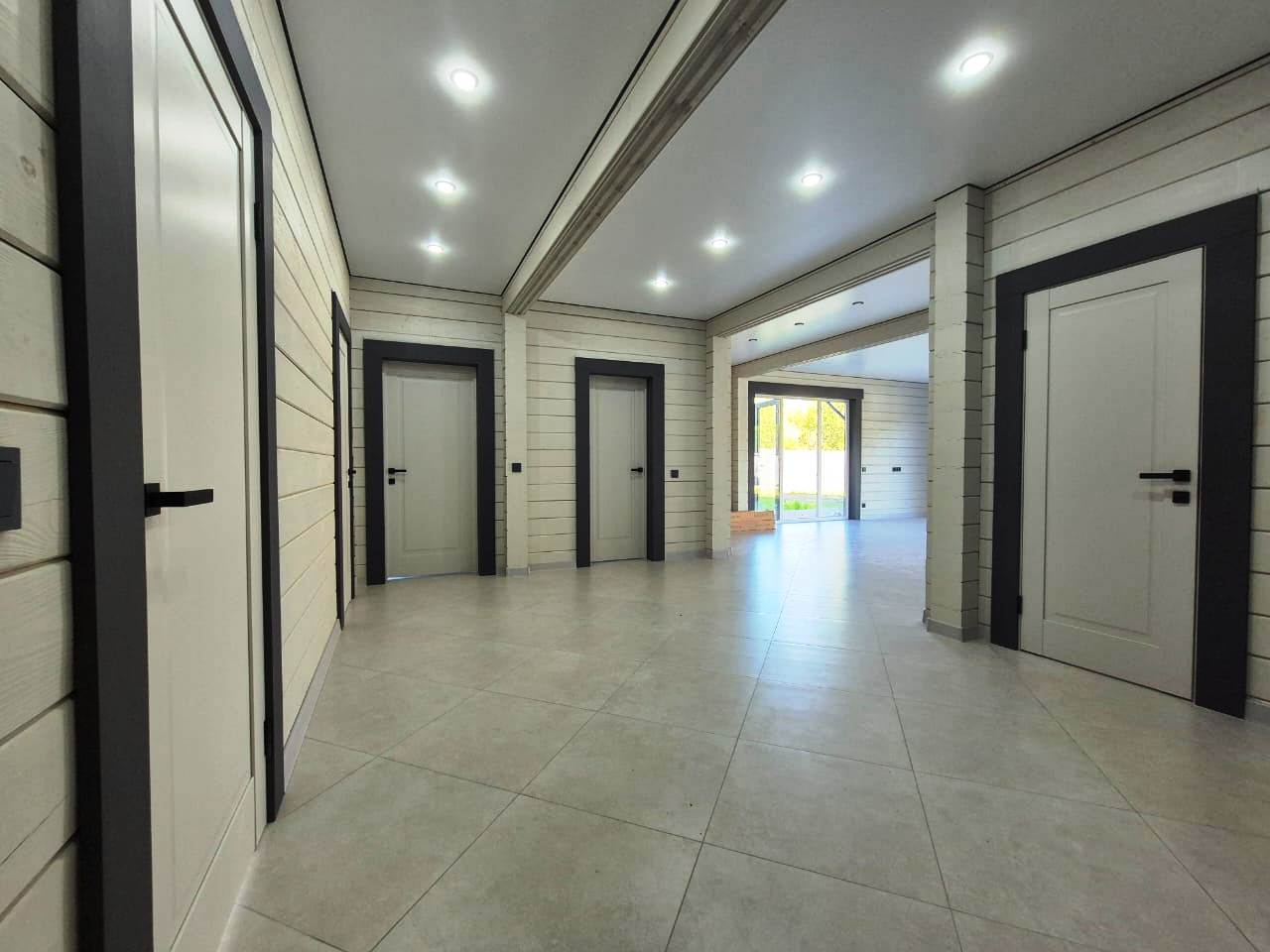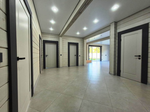 Дом построен в 2024 году из клееного бруса толщиной 200 мм и оснащен надежным плитным фундаментом,что гарантирует его долговечность и экологичность. Материал кровли — керамическая черепица. В доме четыре комнаты, общая жилая площадь составляет 52,1 кв. м, а площадь кухни — 47,7 кв. м. Два раздельных санузла обеспечивают удобство для всех членов семьи.