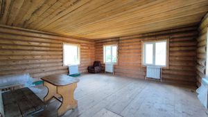 Материал стен - бревно . Фундамент - лента из блоков фбс. Кровля - профнастил.