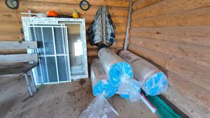 Новому владельцу оставляют купленные строительные материалы: половая доска, стеклопакеты, пенофол, пвх трубы.