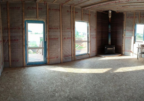 Дом построен по всем правилам каркасной технологии: Фундамент дома ЖБ сваи Силовой каркас изготовлен из сухой доски. Утепление 200 мм.(стены, потолок, пол) Вальмовая крыша (имеет четыре ската в форме пирамиды, что даёт возможность сделать функциональным второй этаж) Покрытие металлочерепица.