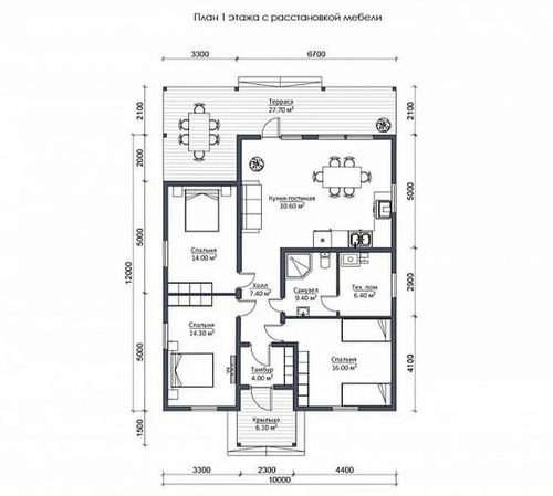 Терасса обращена на теневую сторону дома - комфортно для отдыха в солнечные летние дни.