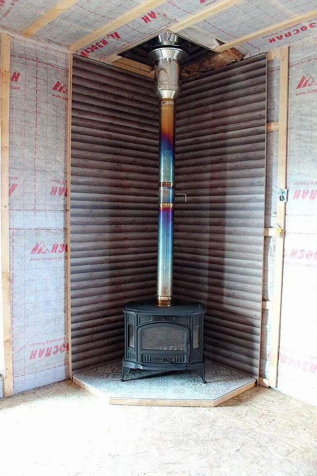 В кухне-гостиной установлен польский чугунный камин.