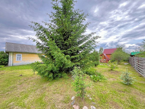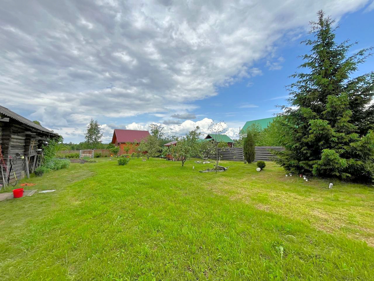 Также на участке посажены дубы, клён, туи и гордо возвышается ель.