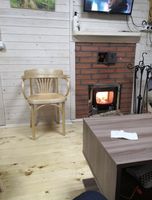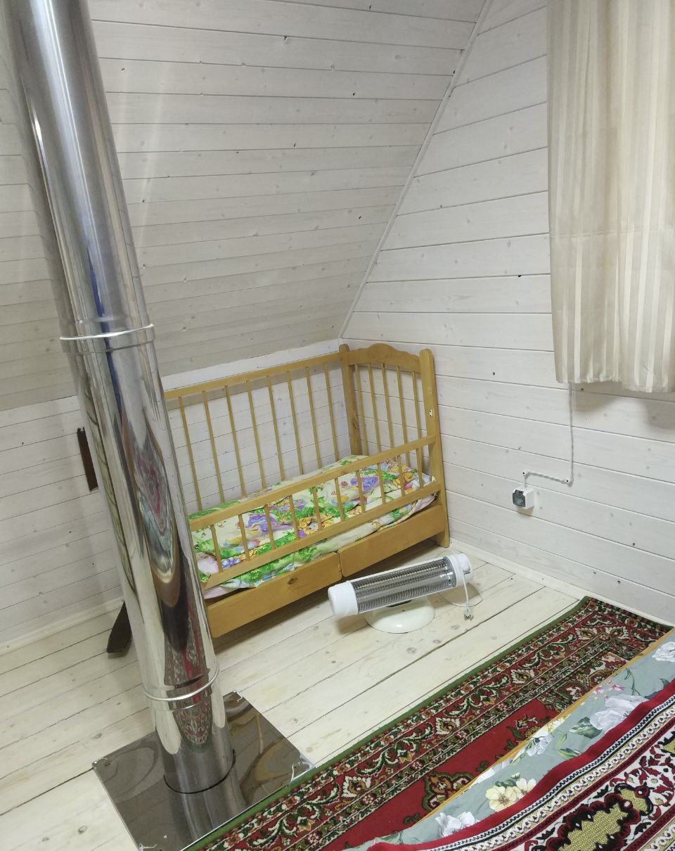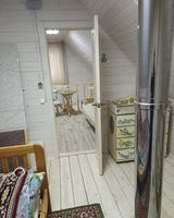 Ремонт в доме выполнен в светлых тонах, стены обшиты вагонкой, вставлены качественные стеклопакеты, добавлены электрические радиаторы отопления, пол - натуральное дерево. В центре кухни-гостиной находится его сердце - печь-камин, которая отапливает оба этажа.
