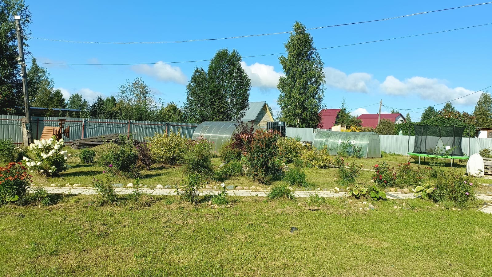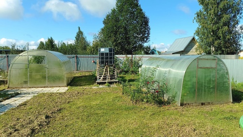 На участке расположена хозяйственная постройка с верандой и дровником, кессоном и системой хранения; есть колодец, две теплицы, высажены туи, плодовые деревья, кустарники, за забором находятся 2 больших пруда.
