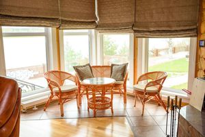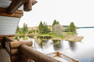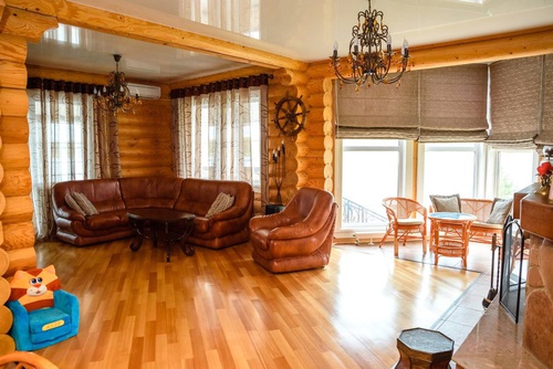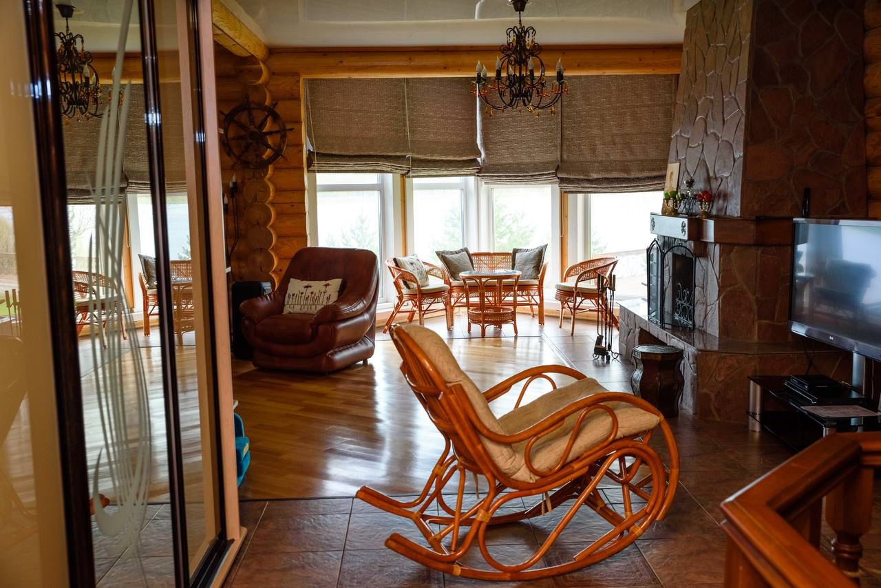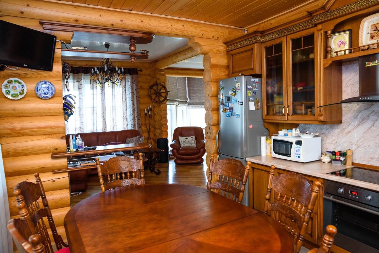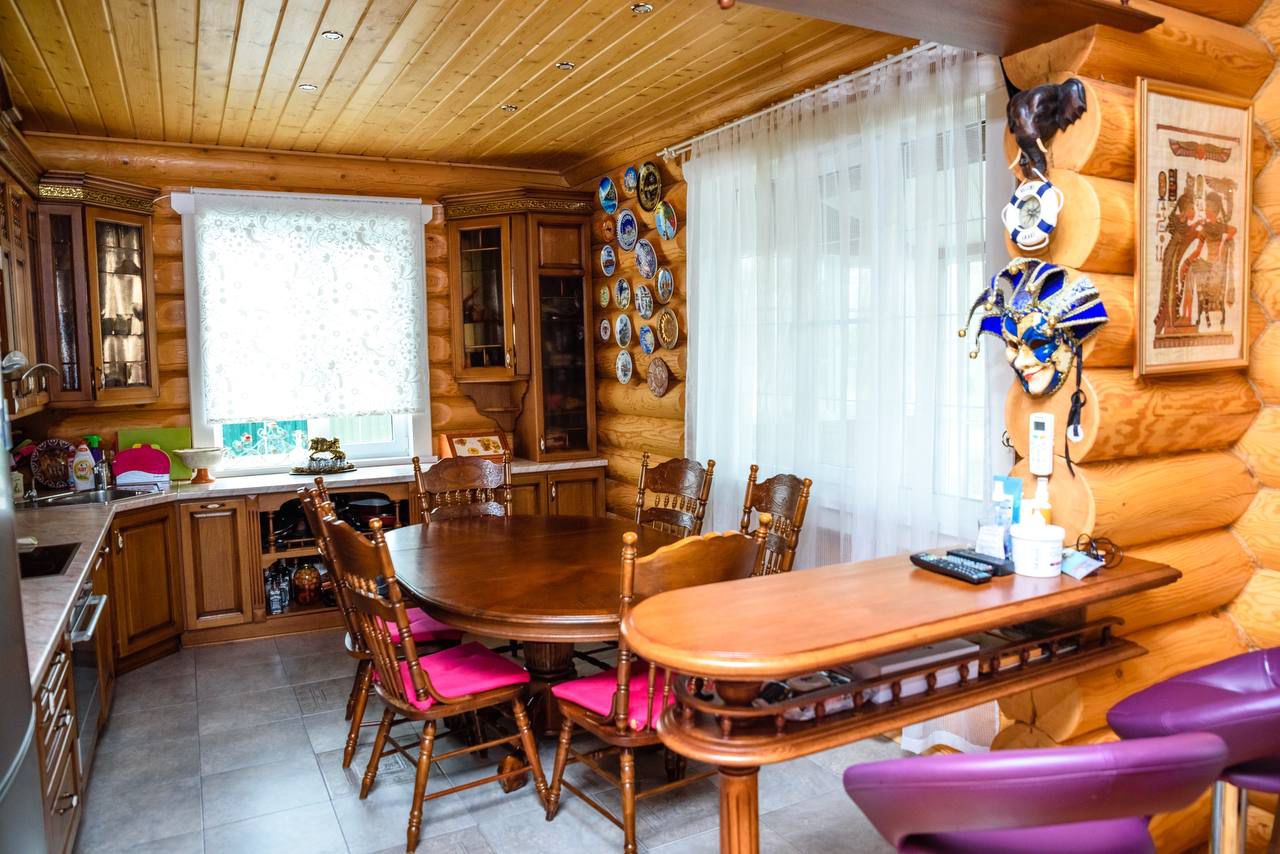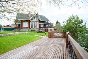 Участок площадью 16 соток. Просторный рубленный дом производит впечатление с первого взгляда с террасой и панорамным остеклением на балконе, три просторные спальни, уютный зал с камином и кухня-столовая. Внутренний дизайн выполнен с использованием натуральных материалов - плитка и паркет из лиственницы, мебель из массива древесины разных пород.