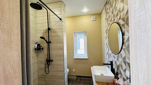 Выполнен современный качественный ремонт, Бонус мебель в доме и бытовая техника, установлена сантехника, инсталляции, кухня с духовым шкафом, варочной панелью, холодильником, посудомойкой, микроволновой печью и вытяжкой.