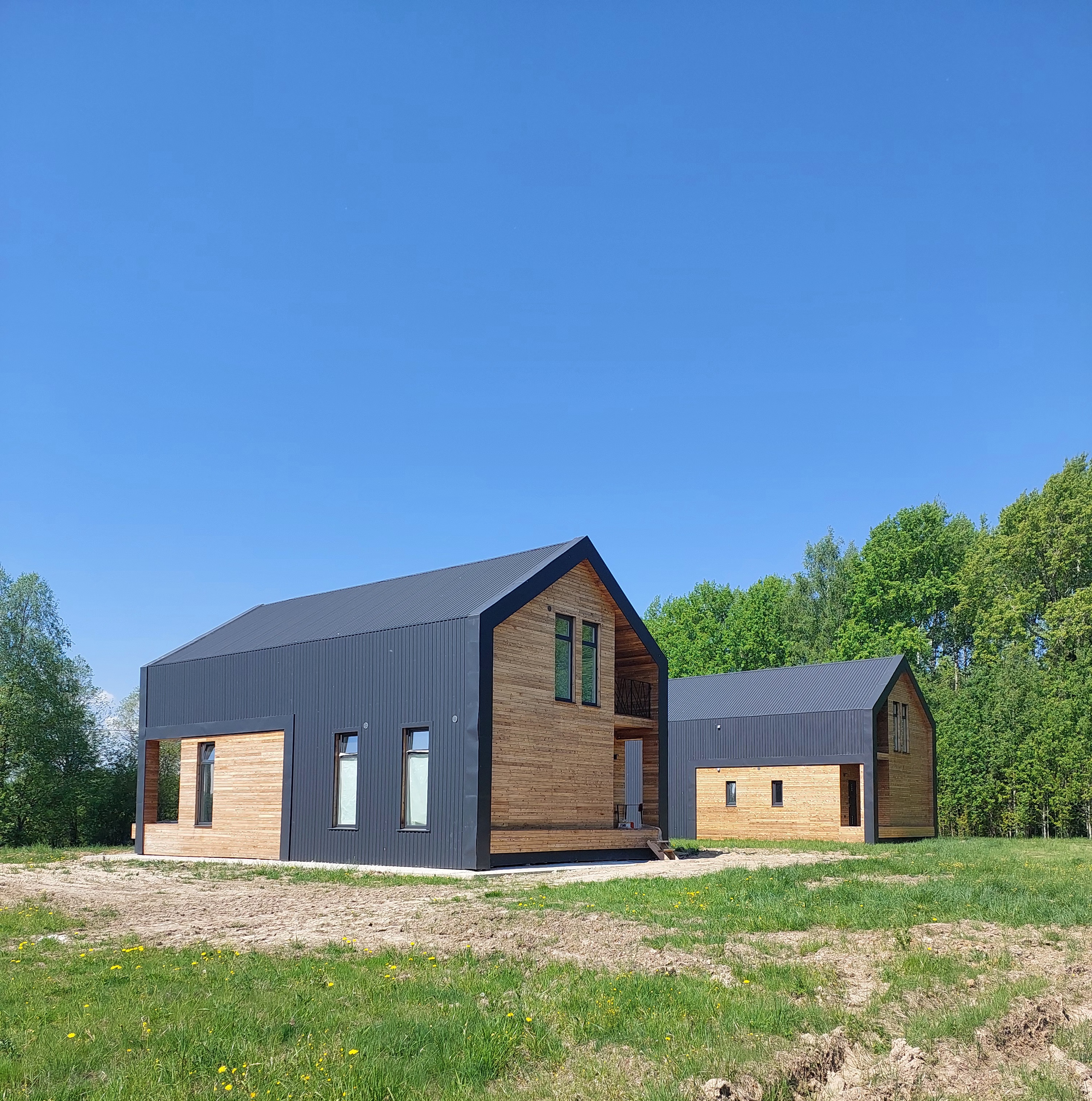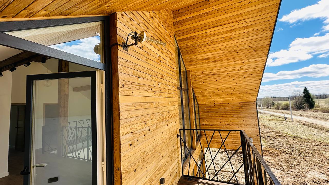 - вентилируемый фасад скрытого монтажа, натуральное дерево после термической обработки, не требует покраски, не боится влаги и не выцветает.
