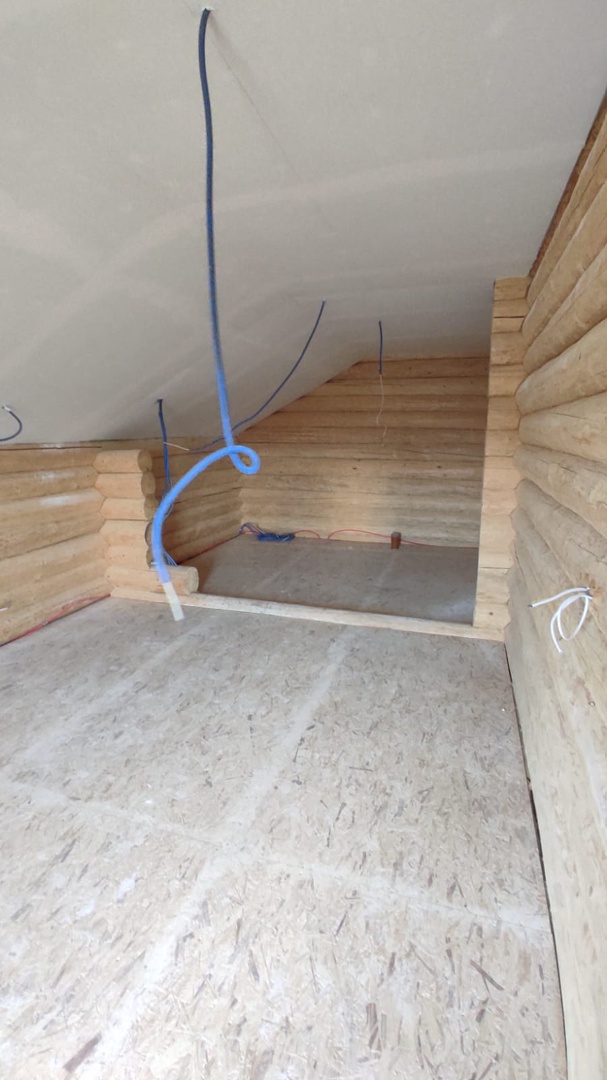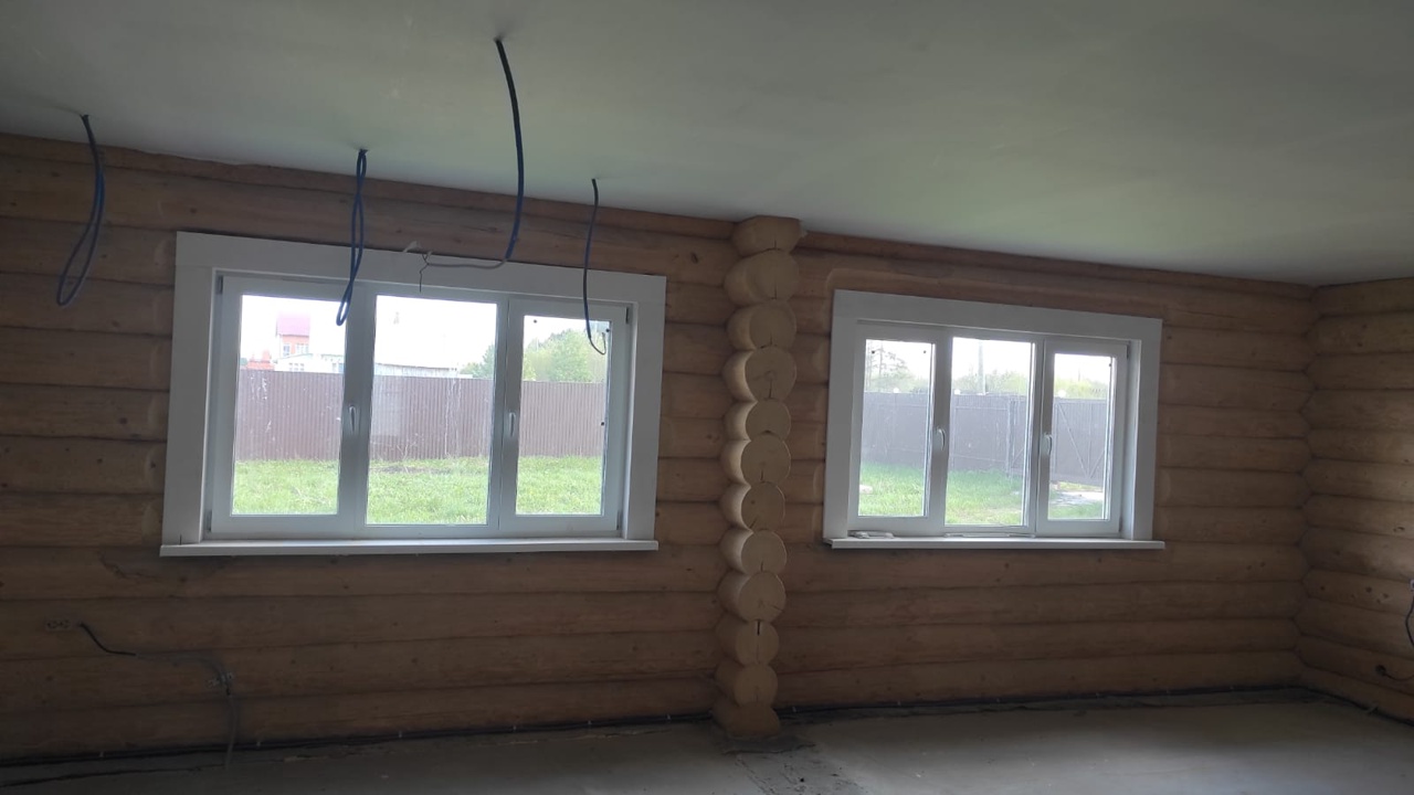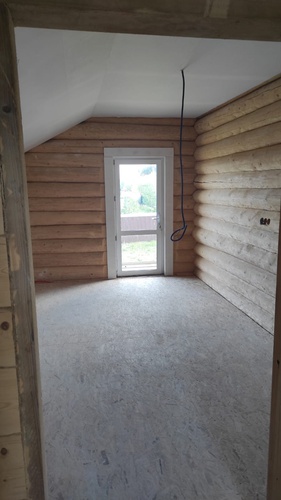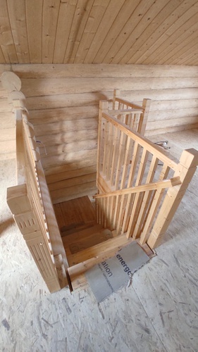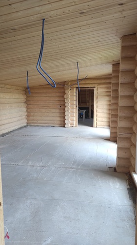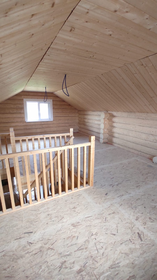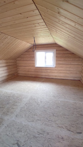 Несущие и внутренние стены: отборное бревно, минимальный диаметр 25 см, покрытие с внешней стороны "серебром"