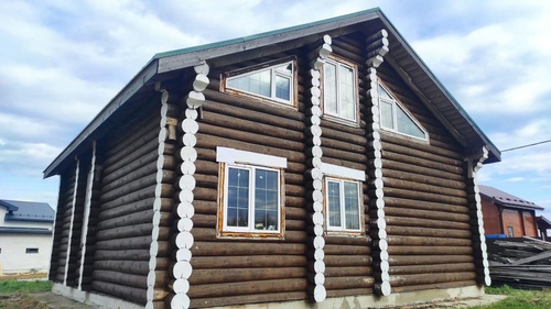 Дом из профилированного бруса, обшит планкеном. Первый этаж 120 кв.м, площадь второго этажа 80 кв.м. Круглогодичный подъезд.