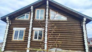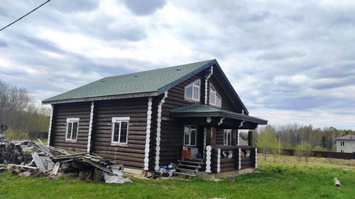 Диаметр бревна не менее 30 см. Все работы делались по проектам для себя. К дому и земельному участку прилагается: 1) Дизайн -проект дома (7 комнат: 4 спальни на втором этаже, 1 зал-кухня 43 м.кв. на первом и еще 2 комнаты на первом этаже, а также туалет-ванна на первом и втором этажах .