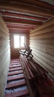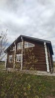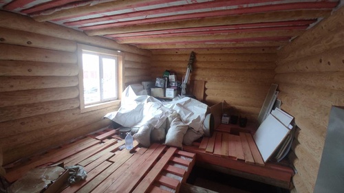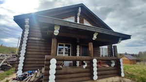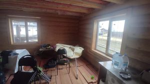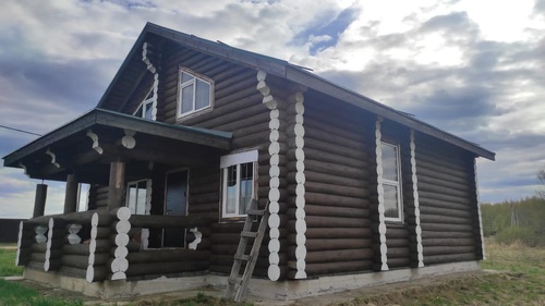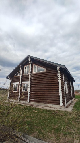 Требуется сделать подбой кровли, установить наличники у окон и двери, чистовой пол, электрику, покрытие бревен внутри помещений, внутреннюю лестницу, провести коммуникации, установить сантехническое оборудование, систему отопления (газовый котел) и забор вокруг дома. С двумя соседями можно договориться и две стороны забора сделать пополам.