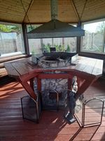 На земельном участке 2130 квм находится множество построек. Основной дом площадью 92 квм, гостевой дом с баней, гостевой дом, баня, беседка крытая с барбекю, беседка открытая, две хозпостройки.