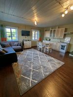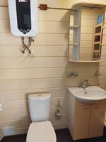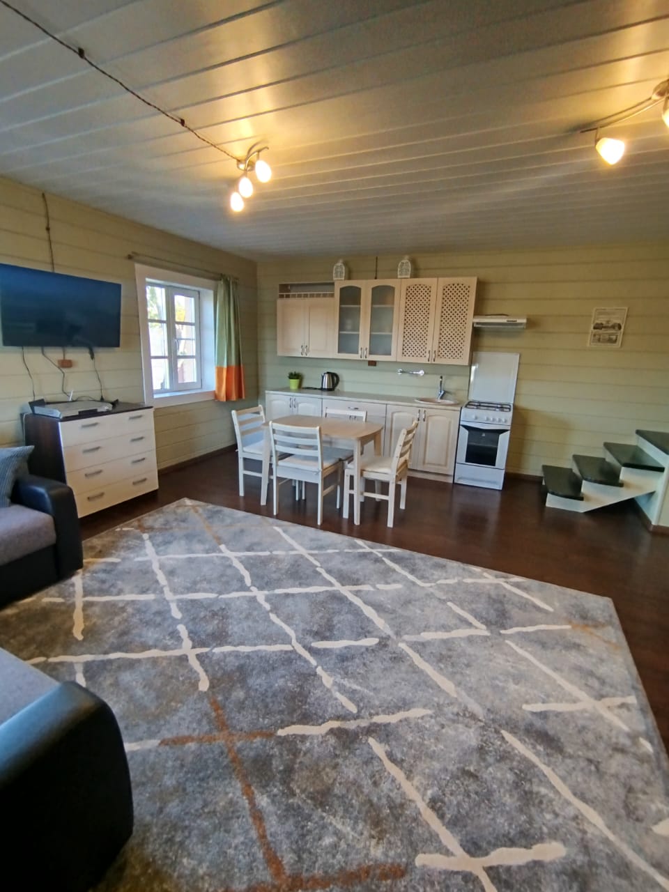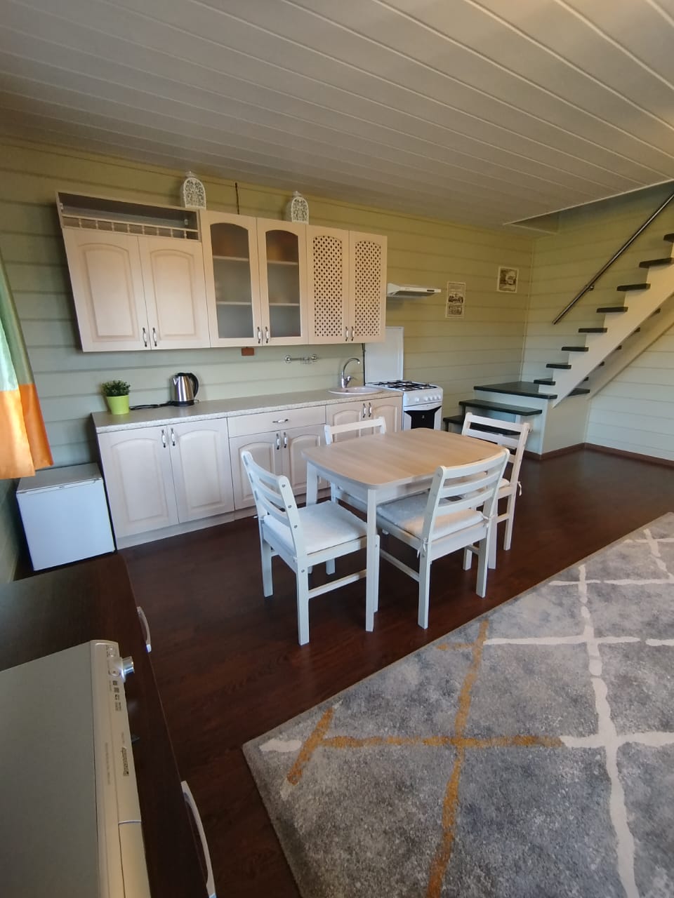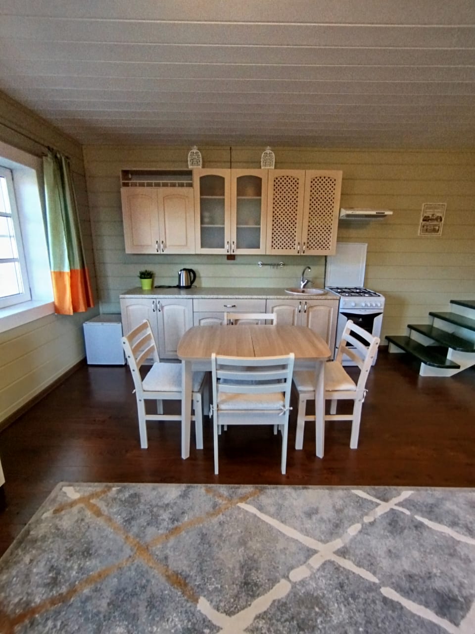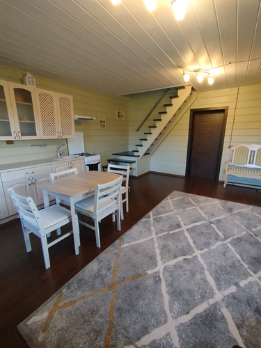 Основной дом построен в 2017 году, имеет два этажа и три комнаты. Общая площадь — 92 кв. м, жилая — 55 кв. м. Высота потолков — 3 метра, что создаёт ощущение простора и свободы. Евроремонт позволит вам сразу заселиться и наслаждаться комфортом. Все дома предназначены для круглогодичного проживания.