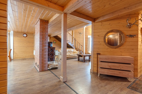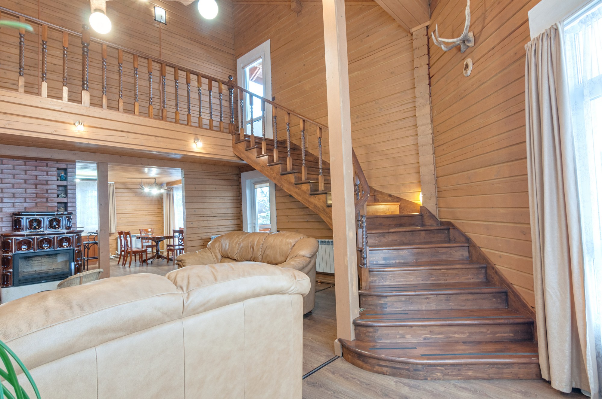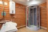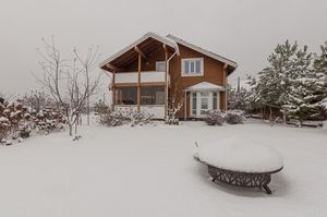 Конструктив: фундамент - лента на буронабивных сваях, подвал глубиной 700-1200мм, пол в подвале бетонный, материал стен - профилированный брус 200х140 мм, собран на джутевнутренние перегородки 140х140 мм, снаружи дом покрыт пробкосодержащей композицией, кровля - мягкая черепица, утеплитель, отопление - газовый котел BAXI LUNA 3,резервное отопление конвекторы NOBO теплые полы в санузлах и коридорах, печь-камин - производство Чехия ABX KARELIE с керамическими израсцами, кирпичный дымоход через 2 этаж, имеет три канала, держит тепло до 8 часов, комнаты второго этажа оборудованы дополнительно мансардными окнами, вода подается насосами, канализация - биологическая станция очистки ЮНИЛОС АСТРА 6, емкость для полива10м3,