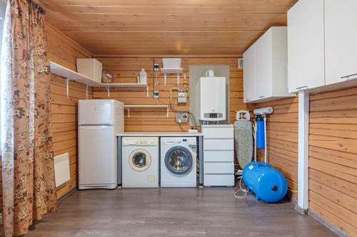 На участке есть гараж (36м2, 6х6м, автоматическиене ворота, теплый пол, большой стальной верстак, стеллажная система, полки для хранения колес), парковка ( выложенна брусчаткой 6х24 м, из них 6х6 м находится под навесом), банный комплекс, а также все необходимые коммуникации: электричество (освещение участка с различными режимами и выключателями в 4х разных точках), водоснабжение, газ, канализация.