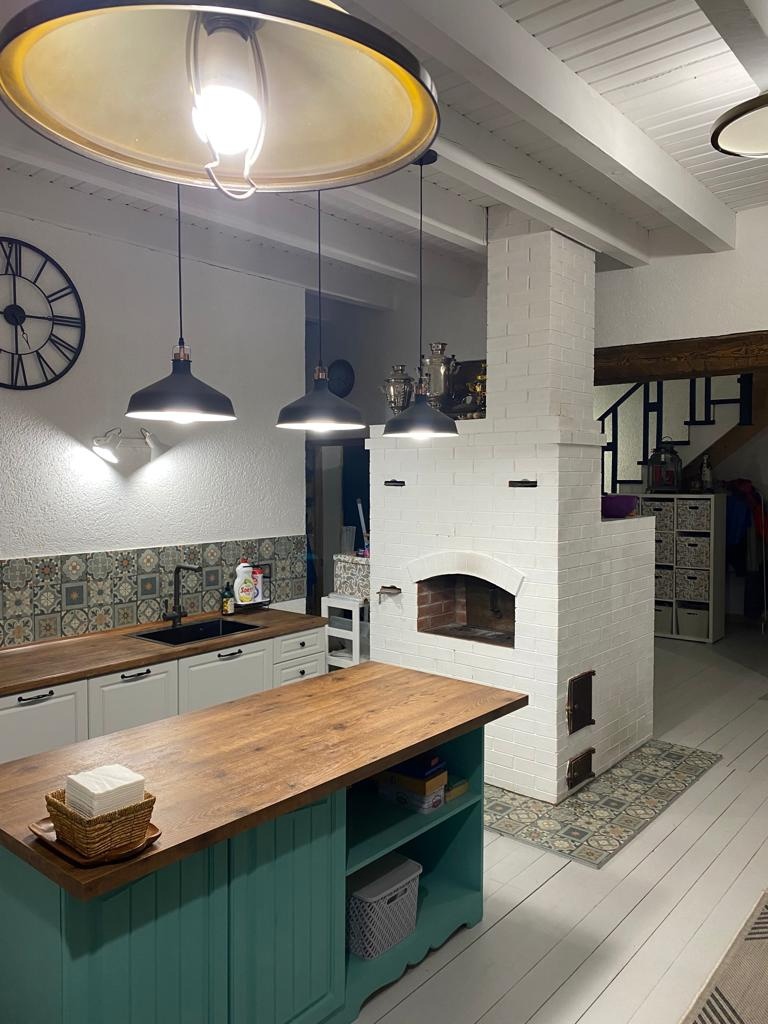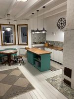 Осуществлялся авторский надзор каждого этапа строительства. Дом строился для себя, использовались только качественные материалы. Все работы выполнялись по нормам СНиПа, с предварительной геодезической экспертизой. Наружные стены дома выполнены из газобетонных блоков с армированием в каждом третьем ряду, толщина стен 400. Наружное утепление стен 100, отделка фасадными панелями. Фундамент из блоков ФБС. Крыша из мягкой черепицы. Стеклопакеты с энергосберегательным покрытием. Высота потолков первого этажа 3.2 метра, второго - от 1.7 до 3.5 метров.