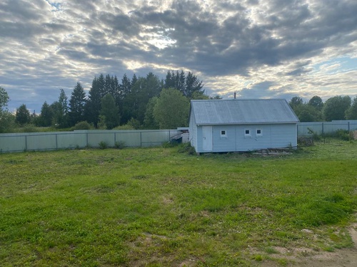Забор из профнастила. На участке есть баня 24 кв.м. с комнатой отдыха, а также пруд, дачный домик 32 кв.м., три хозяйственные постройки, теплица, плодовые деревья, ягодные кустарники, место для хранения заготовок под домом.