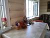 Дом высокий, теплый. размером 6 на 9 метров, с перерубом, диаметр бревен 32-39 см, лаги и балки 100 на 200 см, утепление 20 см.