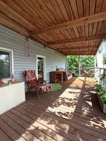 В доме 2 выхода: центральный на веранду (12 кв.м.) и на террасу (24 кв.м.).