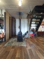 На первом этаже: просторная гостиная с печью, кухня, санузел (общая площадь этажа 43,2 кв.м.).
