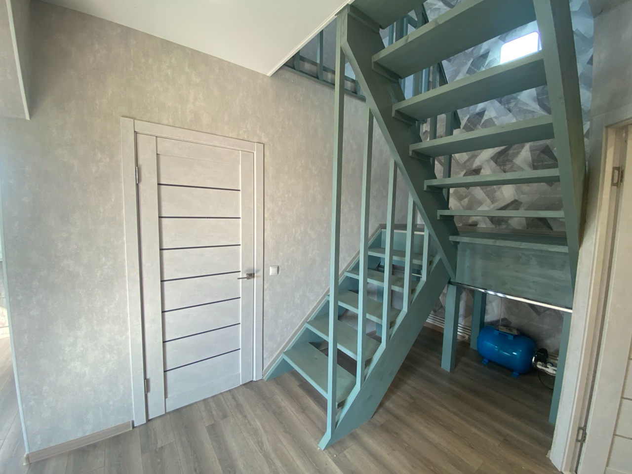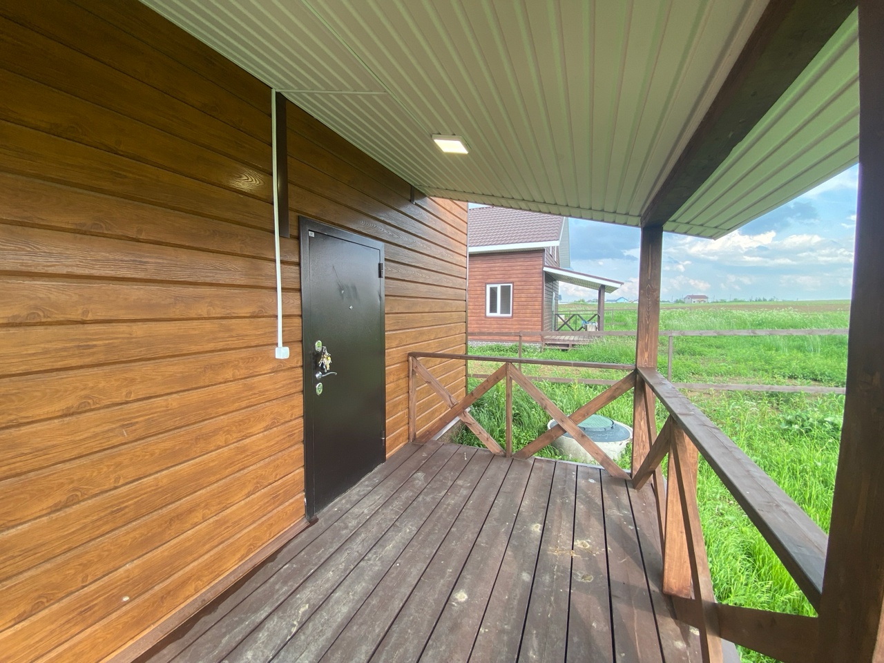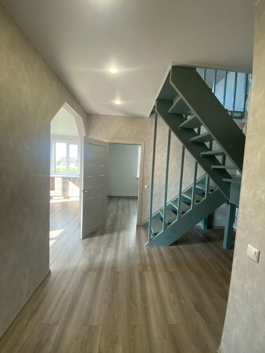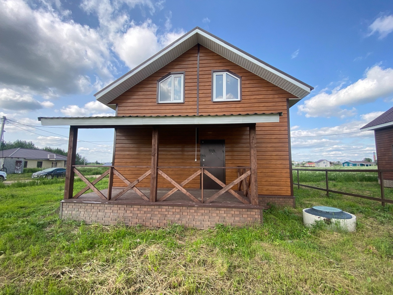 Дом построен в 2024 году, общая площадь — 110 кв. м, из них жилая — 60 кв. м, площадь кухни — 20 кв. м. В доме 4 комнаты (15 + 20 + 10 + 15 кв. м), 2 совмещённых санузла. Дом двухэтажный, построен на железобетонных сваях из сэндвич-панелей, с деревянными перекрытиями и металлической кровлей. Участок площадью 6 соток подходит для индивидуального жилищного строительства.